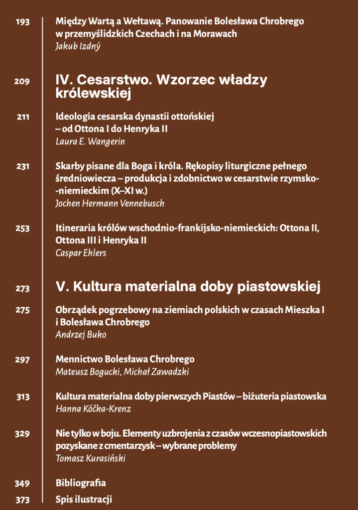 Książka historyczna pod redakcją Tomasza Pełech, Pawła Tyszki i Michała Zawadzkiego pt. Bolesław Chrobry Konteksty : w przystępny sposób opisuje świat pierwszych Piastów. Pokazuje, że koronacja Chrobrego była zwieńczeniem długiego procesu budowania państwa i skutkowała wejściem Polski do wspólnoty łacińskiego Zachodu. Tom zbiera najnowsze ustalenia o fundamentach młodego kraju: grodach, architekturze i roli Kościoła; o sąsiadach i kontaktach (Czechy, Węgry, Skandynawia, Cesarstwo); o wzorcach królewskiej władzy (m.in. tradycja ottońska) oraz o kulturze materialnej – od zwyczajów pogrzebowych po mennictwo Bolesława Chrobrego. Dzięki temu ukazuje politykę i ambicje pierwszego króla Polski, a także mechanizmy, które kształtowały początki państwa polskiego. Książka łączy badania archeologów, historyków i historyków sztuki, tworząc most między nauką a szerokim gronem odbiorców.